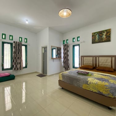 Villa Hijau juga terdiri dari 3 Kamar tidur dan Kamar mandi di dalam untuk ke 3 Kamarnya, Fasilitas yang Lainnya adalah Dapur dengan kitchen Set, ada Ruang Makan dan Ruang Keluarga. mobil bisa lansung di Parkir di Depan Villa untuk kenyamanan menginap wisatawan, jadi yang ingin BBQ di depan villapun bisa ya. Harga Publish untuk villa ini adalah di Rp.1,350,000.memiliki conecting door penghubung 2 villa.